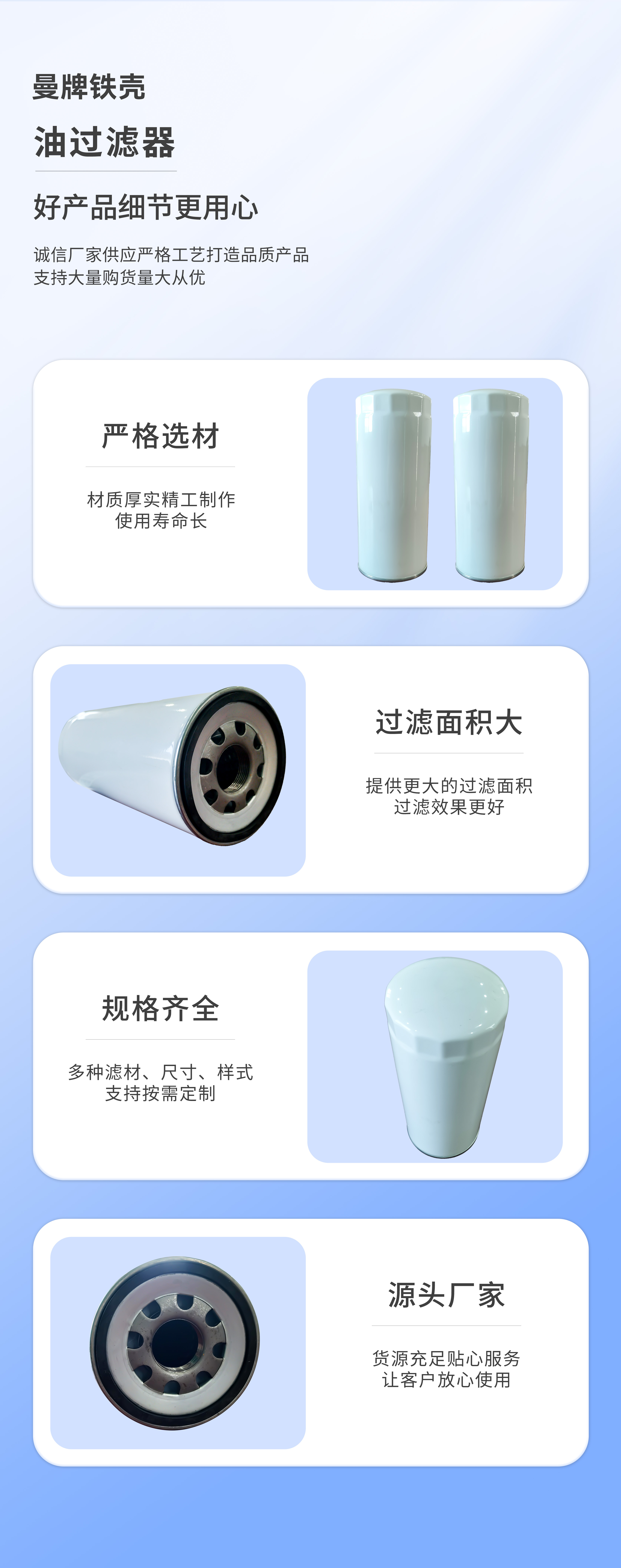 曼牌濾清器廣泛應用在乘用車、商用車、工程機械和工業領域,主要負責清除空氣中的微粒雜質的裝置。其主要作用是濾除將要進入汽缸的空氣中有害雜質,以減少汽缸、活塞、活塞環、氣門及氣門座的早期磨損和氧化。